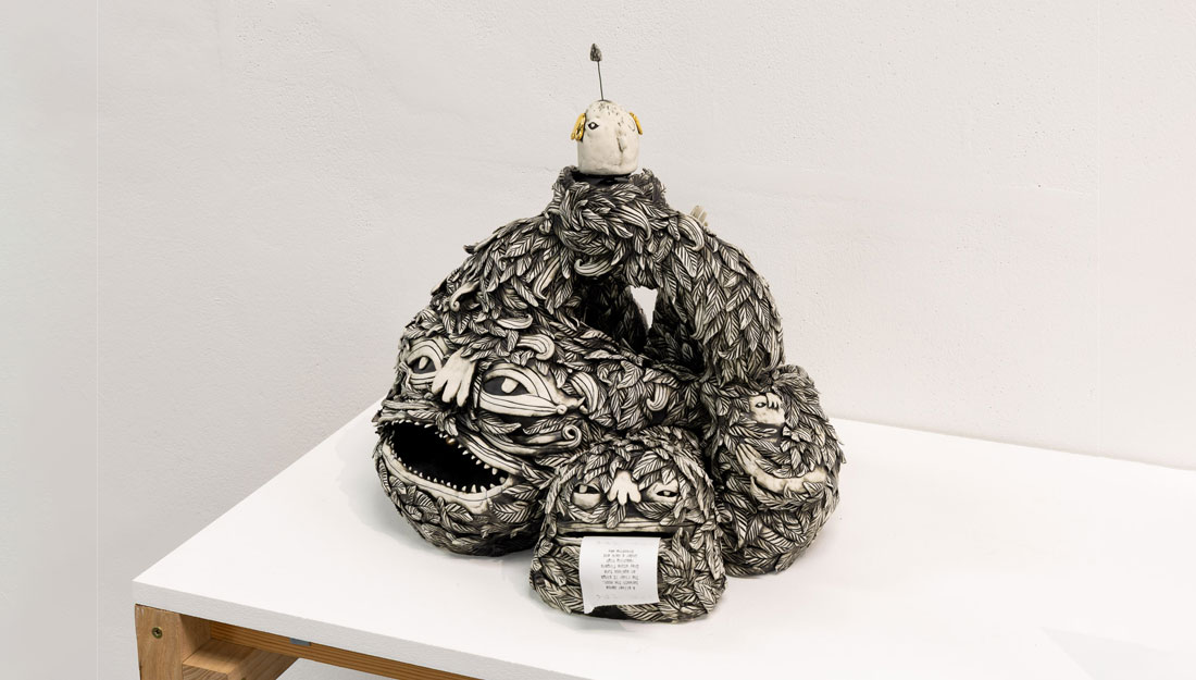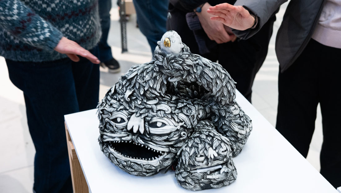 This experimental porcelain sculpture was especially created for the Made in the Middle touring exhibition. Unusually for a delicate ceramic artwork, it was made to be touched. The piece asks the audience to put their hand in the creature’s mouth to receive a personalised poem. The new works that Lucy developed for the exhibition are fun to play with, they invite discovery and create connections with audiences.
