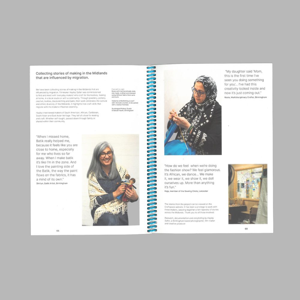Full page illustrated profiles of each selected maker, organised into 3 sections – Materials, Techniques, Stories.